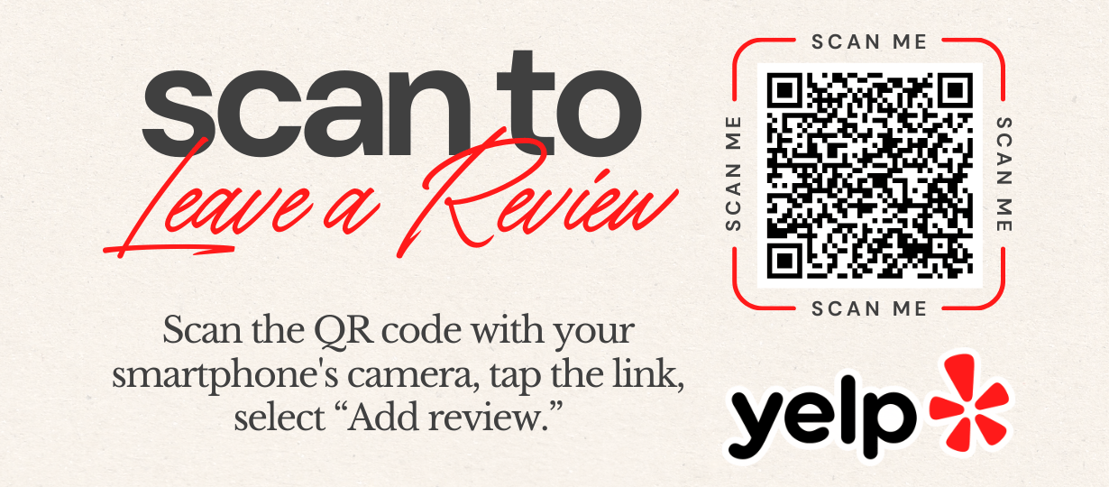 We're always striving to be our best for you! If you've had a great experience, help us spread the word! Your honest feedback on Yelp not only supports our small business but also helps future customers make confident choices. Share your experience here.